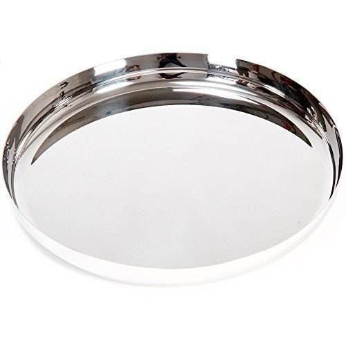 Nouveauté Plateau de service pour aliments et fruits en métal artisanal à un seul niveau, argenté brillant, lavable au lave-vaisselle, pour les événements et les festivals