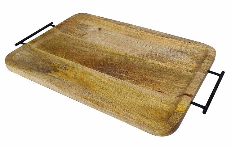 Wooden Serving Tray with Metal Handles