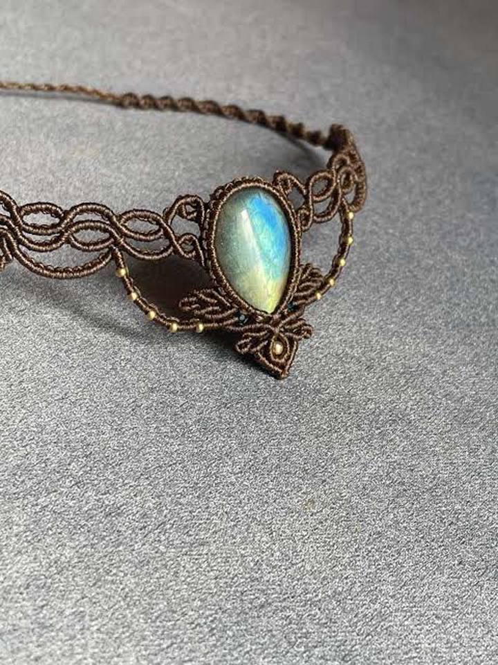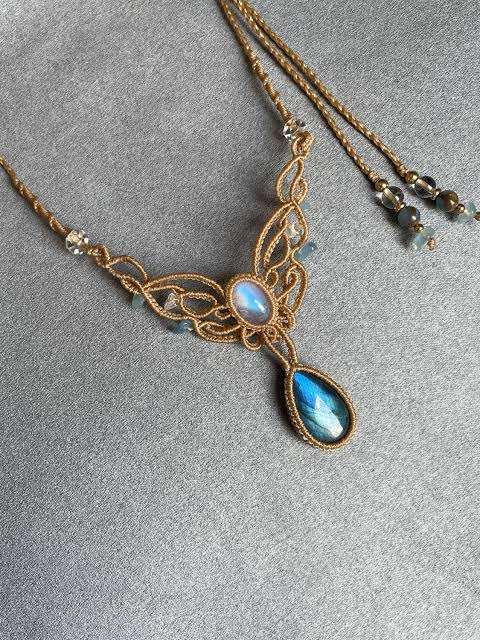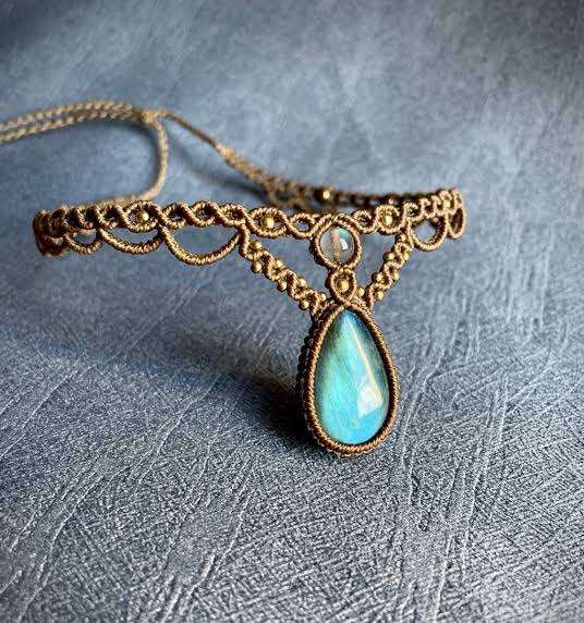 Nouveauté Collier en macramé vintage fait à la main avec pierre de lune labradorite sertie en forme de poire Taille 15 à 20 mm Pendentif Bijoux