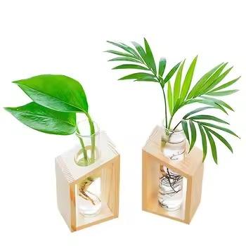 Nom du produit:Vase en bois avec le tube en verre