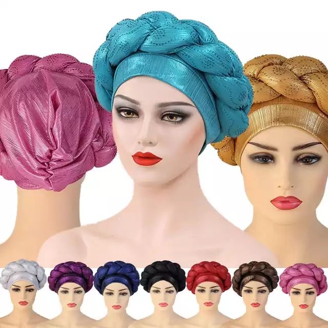 Dernier modèle de turban Aso Oke Auto Gele pour femmes, bonnet avec tresses, foulard musulman, bonnet pour femmes, enveloppes de tête avec diamants, Turbante Mujer