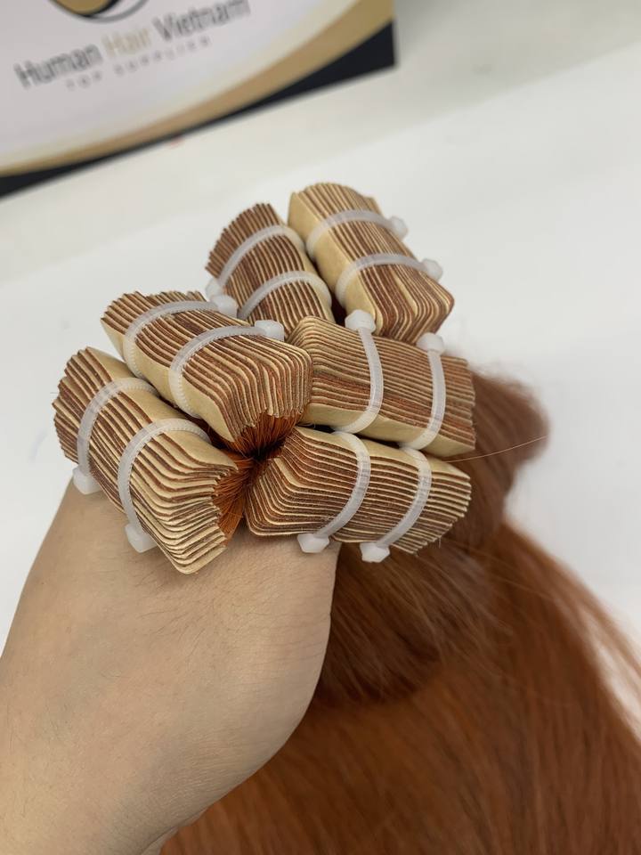 Dernière couleur Orange Vietnam brut Remy russe européen slave bande de cheveux humains en extension style vague Extension de cheveux groupés
