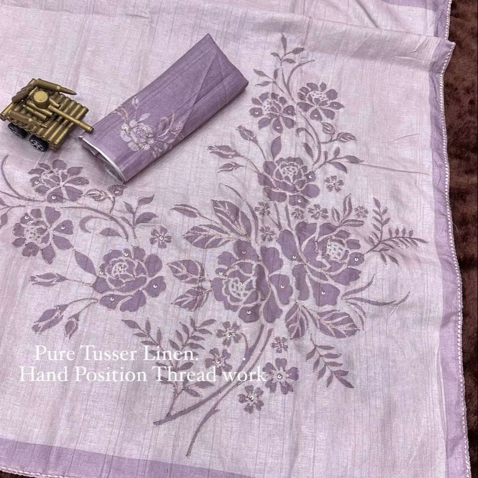 Dernière collection de saris magnifiques, travail à la main au fil, travail Khatha, tissu en lin et coton pour femmes, tenue de fête, tenue traditionnelle