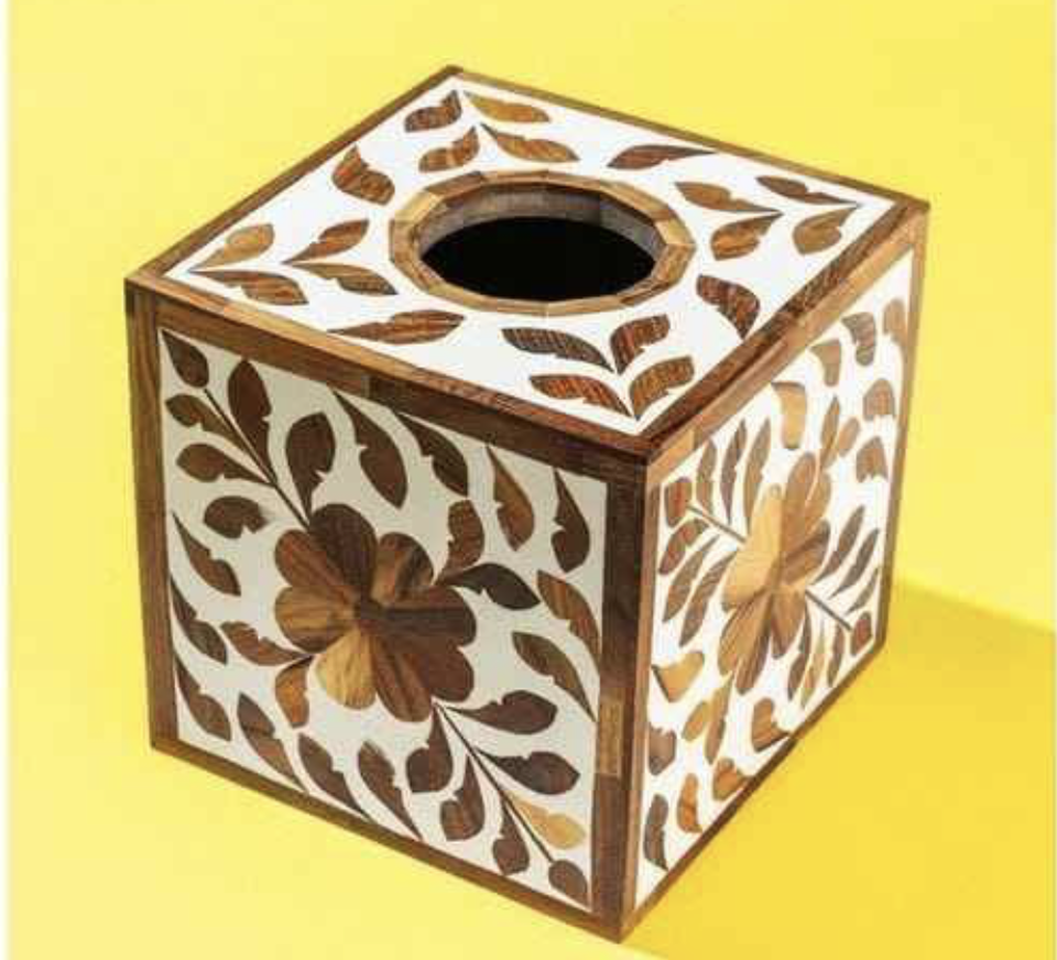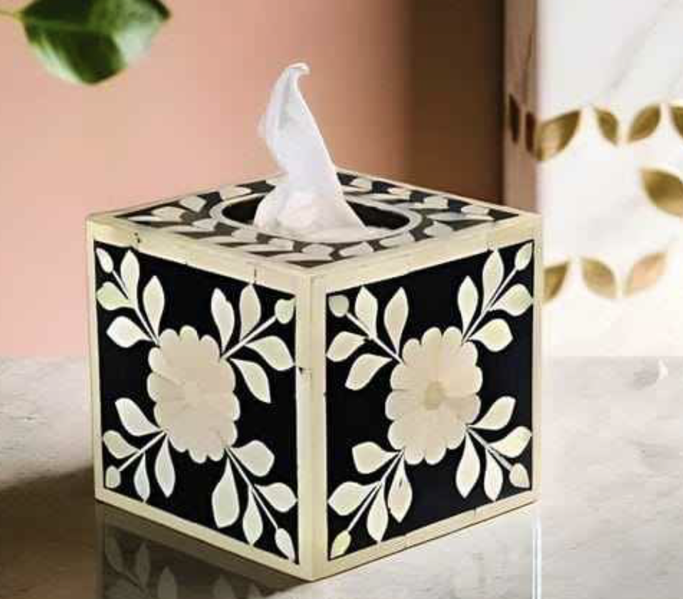 Boîte à mouchoirs en incrustation d'os, également disponible en résine et en nacre, provenant d'Inde