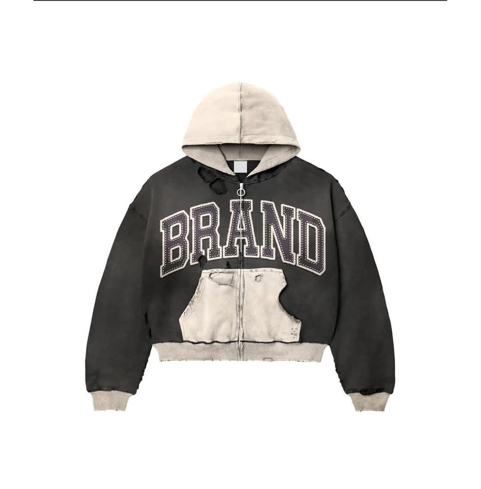 Dernière coupe Boxy Sweat à capuche zippé surdimensionné en détresse délavé à l'acide Sweat à capuche vintage pour homme en éponge française lourde délavée