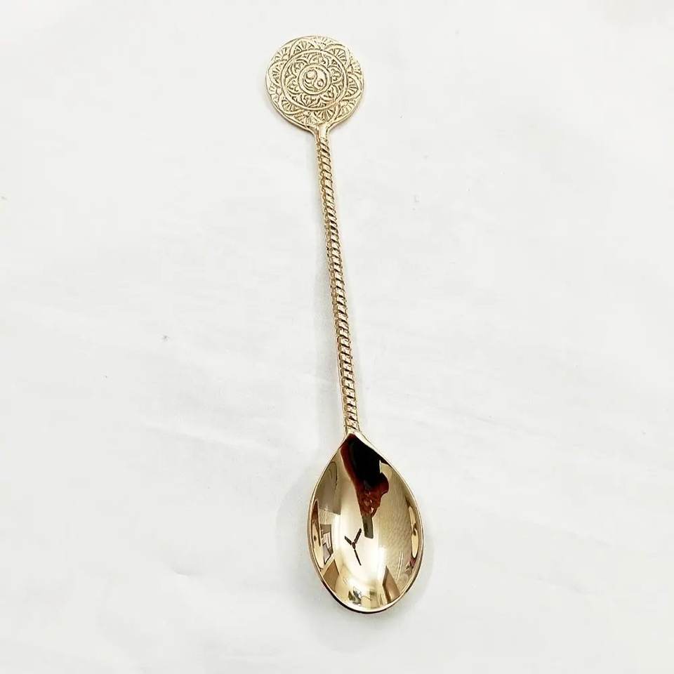 Dernière cuillère en laiton faite à la main, dorée, avec motif floral en relief sur la poignée, idéale pour la table à manger, les dîners et les soupes