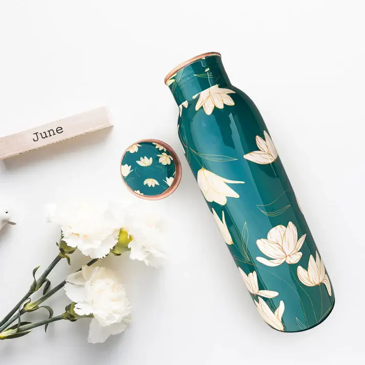 Bouteille d'eau en cuivre de style classique vert, finition décorative personnalisée, idéale pour une hydratation saine et un usage quotidien