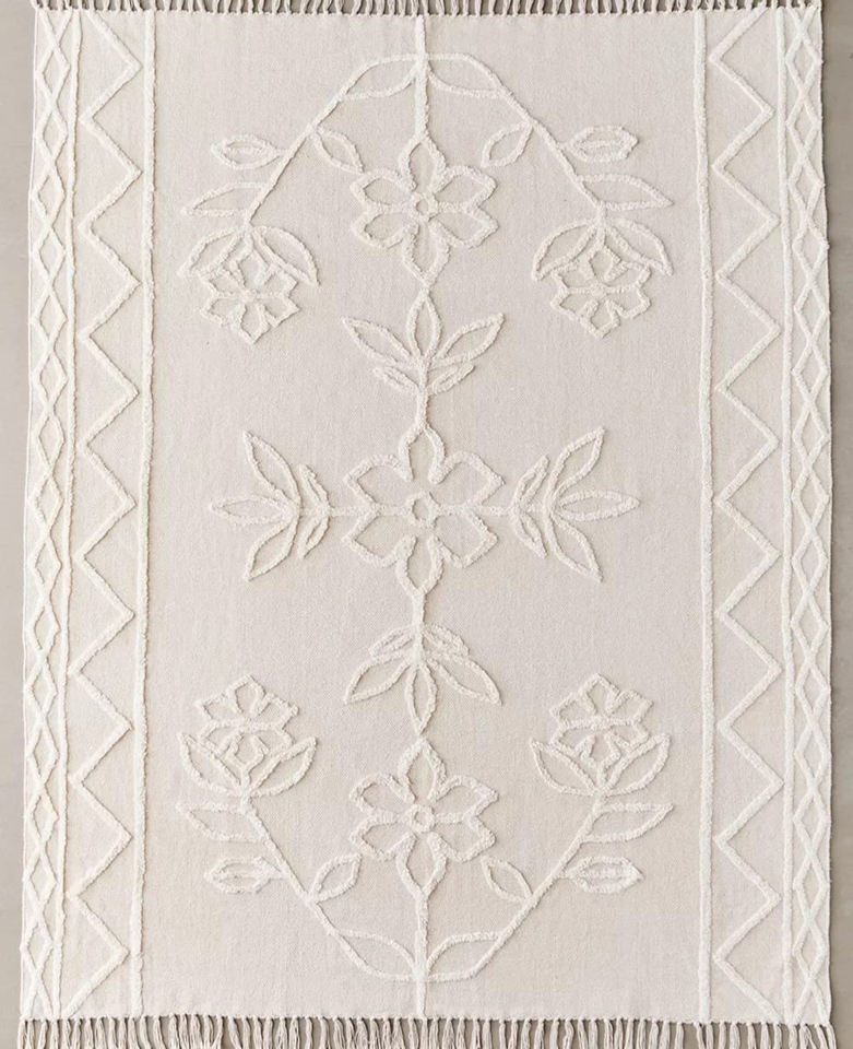 Tufté, brodé avec des franges