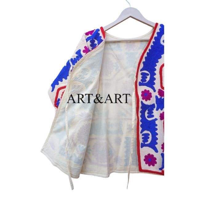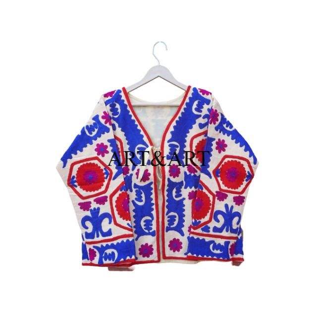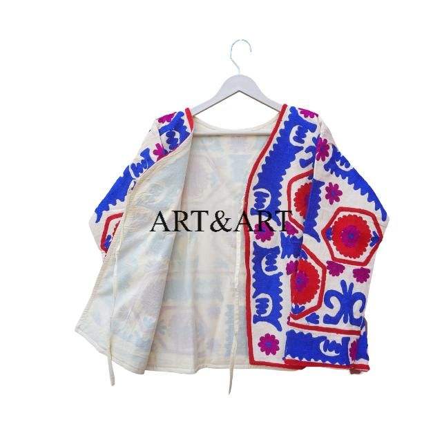 Dernière collection : Housse courte pour femme en coton 100% de haute qualité, écologique, matelassée, faite à la main, avec broderie Suzani et design à lacets, pour l'hiver.