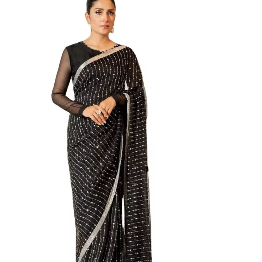 Dernière collection de vêtements de mariage indiens de créateur Saree en Georgette Sarees pré-drapés Sarees Vêtements ethniques