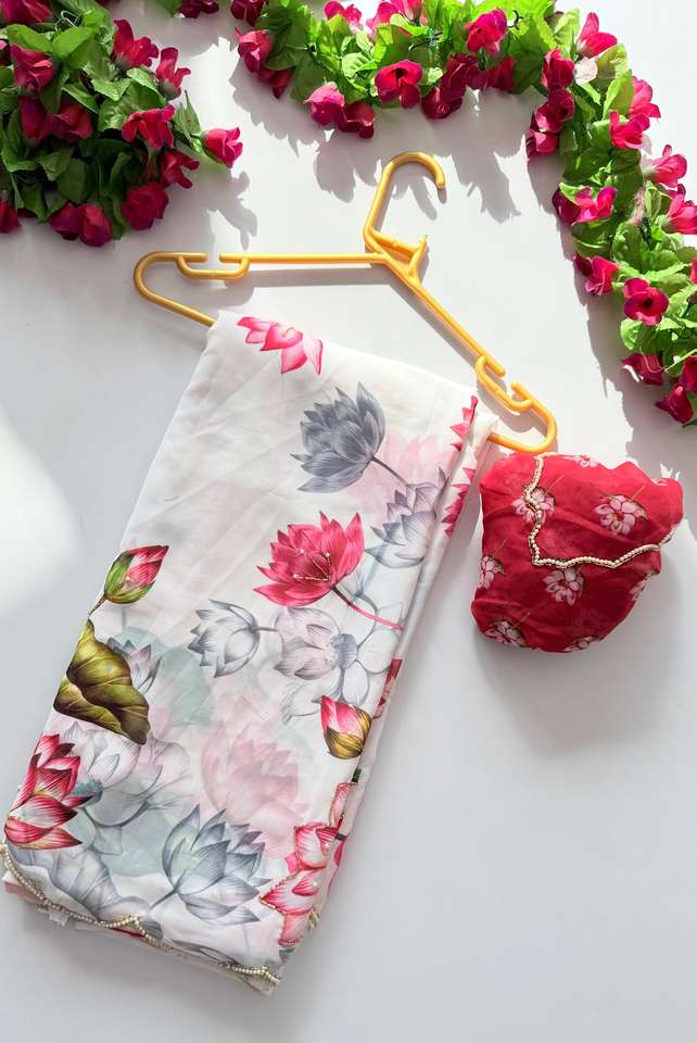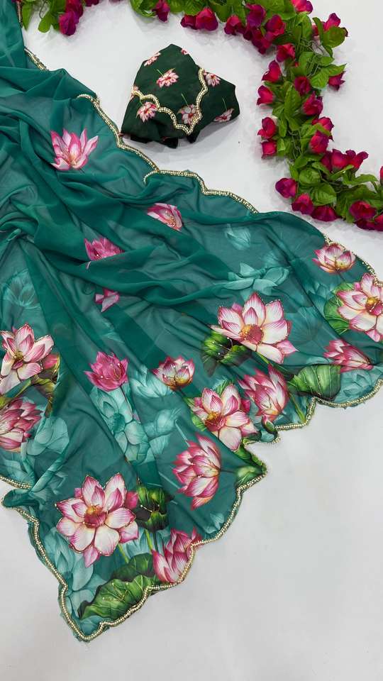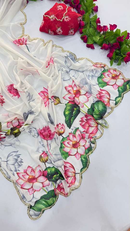 Dernière collection de vêtements de mariage indien Saree en Georgette Fantaisie Imprimé Sari Élégant Saree de créateur Collection Saree Indien