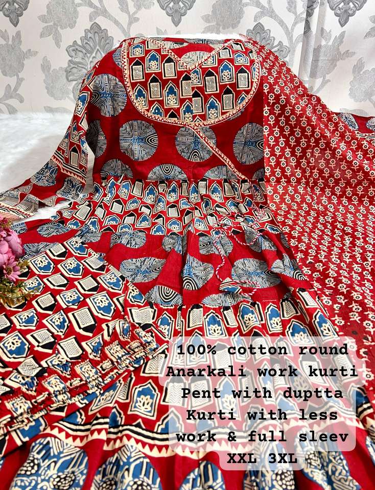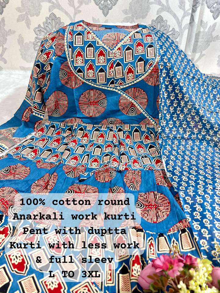 Nom du produit:Dernière Collection Pure Cotton Avec Block Print Kurti Pant And Dupatta