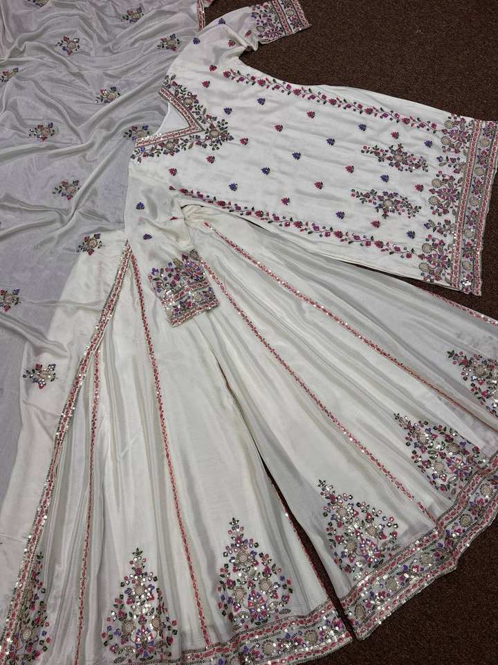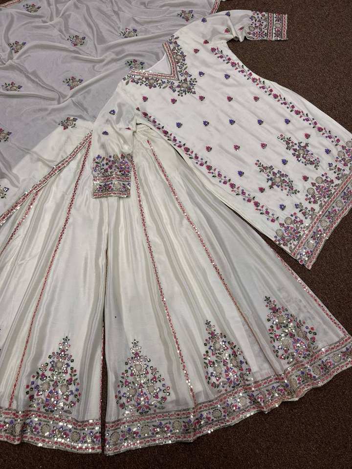Dernière collection de Kurti Palazzo Dupatta brodé en pure soie de chinon pour vêtements de mariage indien pakistanais pour les fêtes