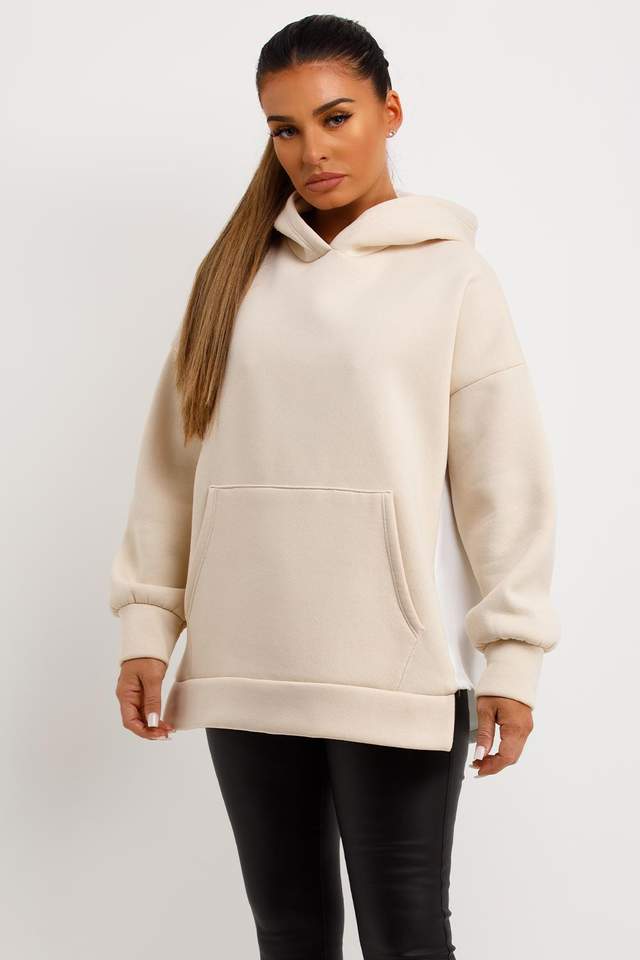 Sweat à capuche surdimensionné beige pour femmes, anti-rides et respirant, dernière collection, pour entraînement, gym, sweat à capuche zippé