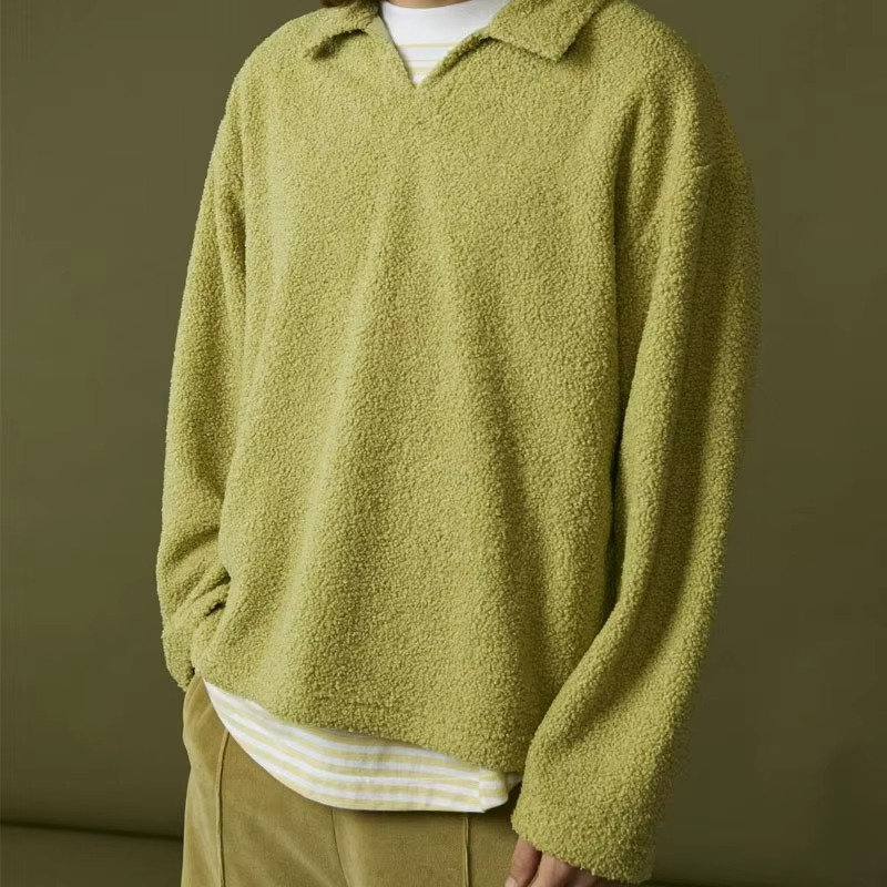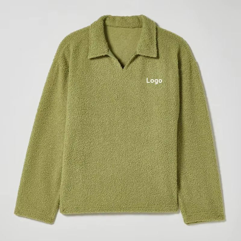Dernière conception personnalisée Logo brodé Col rabattu Pull Sherpa thermique Pull-over sweat-shirt coupe ample