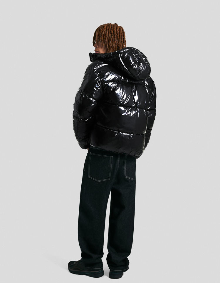 Dernière conception personnalisée Logo brillant à capuche hommes doudoune 100% Polyamide léger coupe-vent hiver extérieur bulle veste