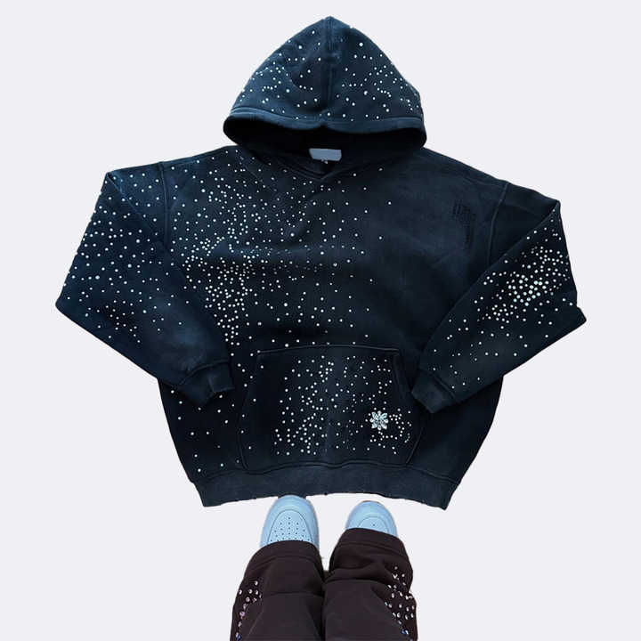 Dernier sweat à capuche personnalisé 100% coton strass surdimensionné dropshoulder fermeture éclair poids lourd patch broderie streetwear à capuche pour hommes