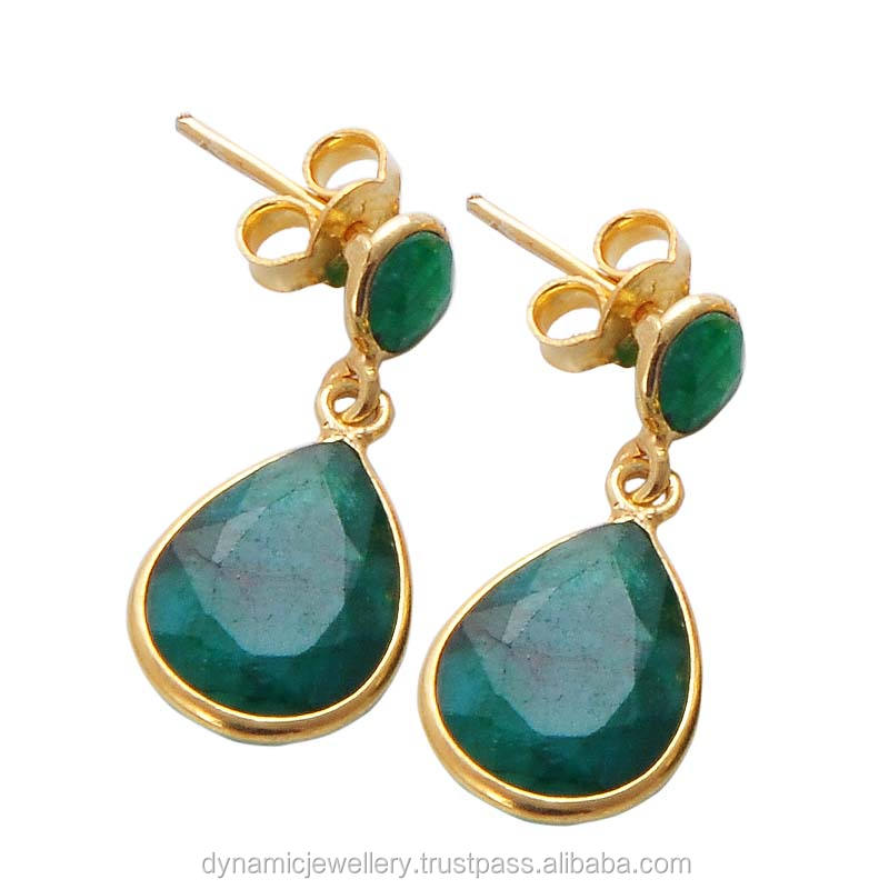 Dernier modèle de boucles d'oreilles en plaqué or 18 carats Pierre précieuse onyx vert Boucles d'oreilles en argent 925 avec plaqué or Vente en gros de bijoux en plaqué or