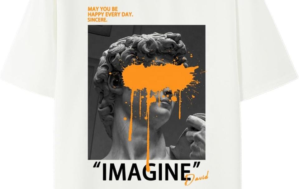 T-shirt Homme 100% Coton Coupe Ample Dernière Collection 2025, Personnalisé avec Impression 3D en Relief, Coupe Classique Décontractée, Respirant 180g