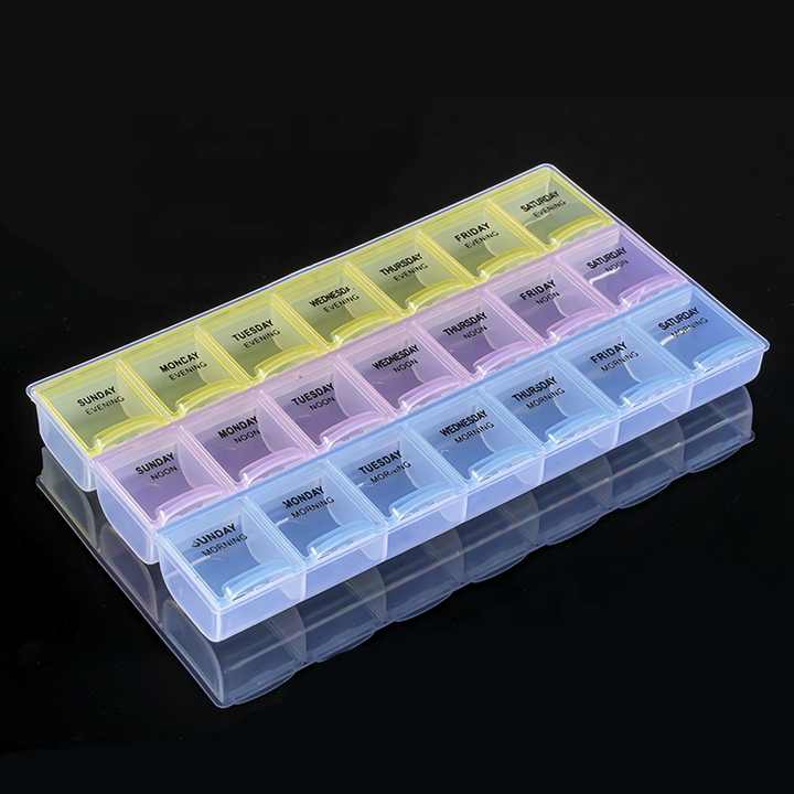 Dernière Conception 21 Grilles Petit Médicament Santé Kit Portable Une Semaine Arc-En-Ciel Boîte À Pilules