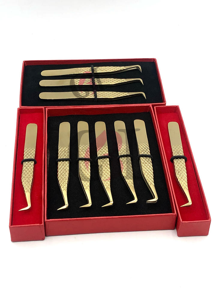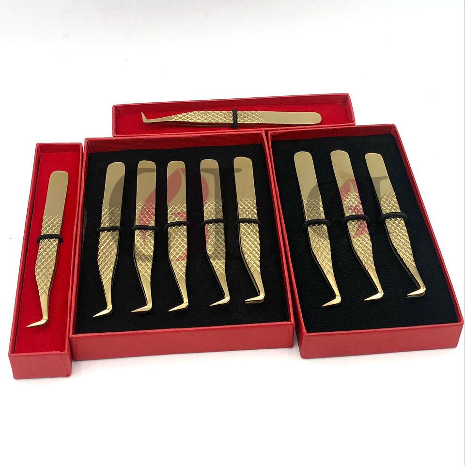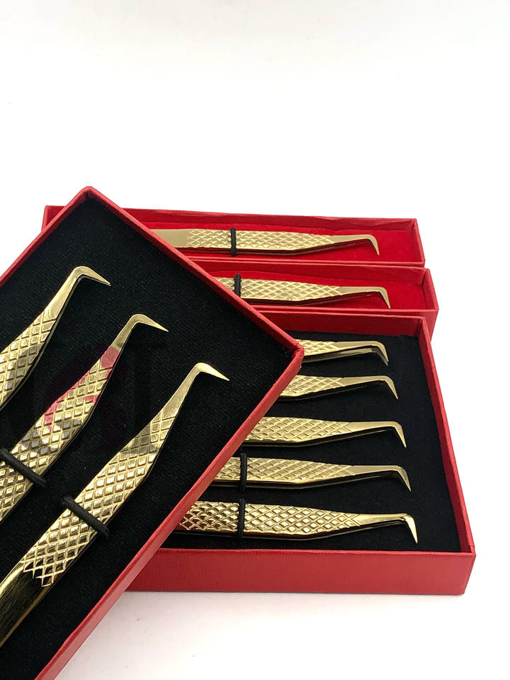 Pince à épiler en fibre plasma dorée à 90 degrés, pointe nano, pour extension de cils, instruments de beauté diamantés en acier inoxydable