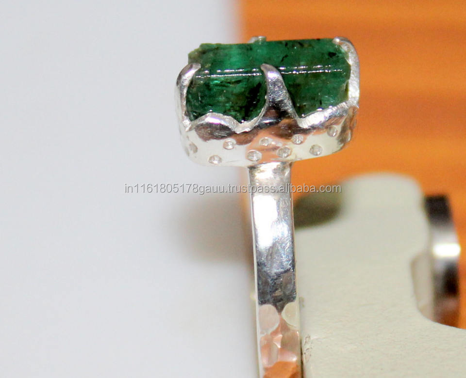 Dernière conception 925 bague en argent massif faite à la main avec pierre précieuse émeraude brute naturelle diamant pierre principale cadeau de Saint Valentin pour les femmes