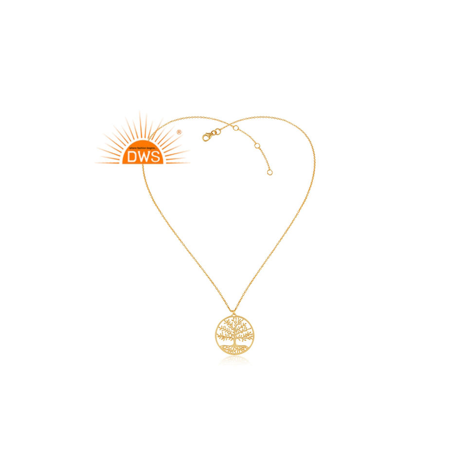 Dernier modèle en argent sterling 925 plaqué or 18 carats Pendentif arbre de vie Collier demi fabricant de bijoux fins