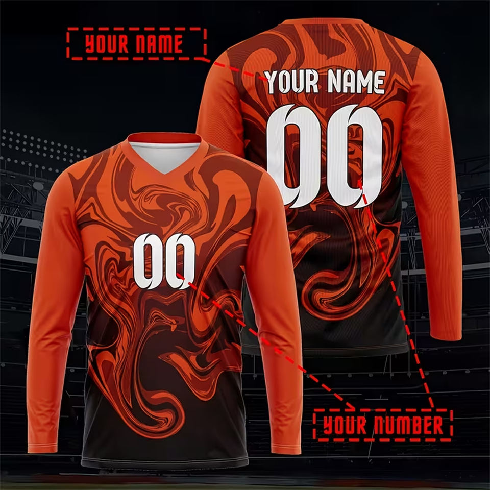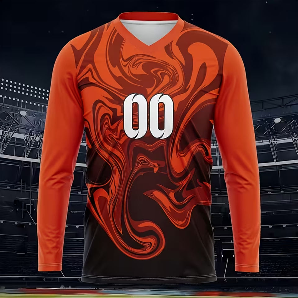 T-shirt à manches longues pour homme adulte, design tendance, entièrement sublimé, col en V, taille plus, séchage rapide, respirant, 100% polyester