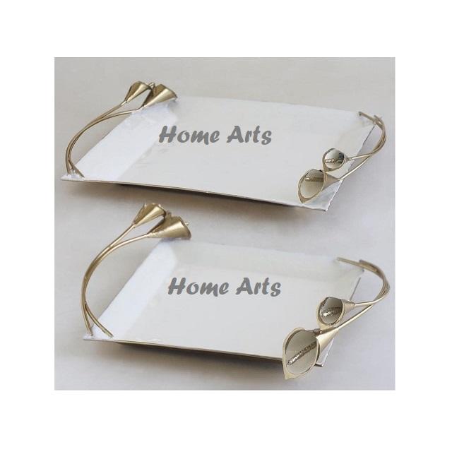 Dernier modèle Plateau à dessert en aluminium de la plus haute qualité, couleur blanc et or, plateau de service alimentaire à prix abordable