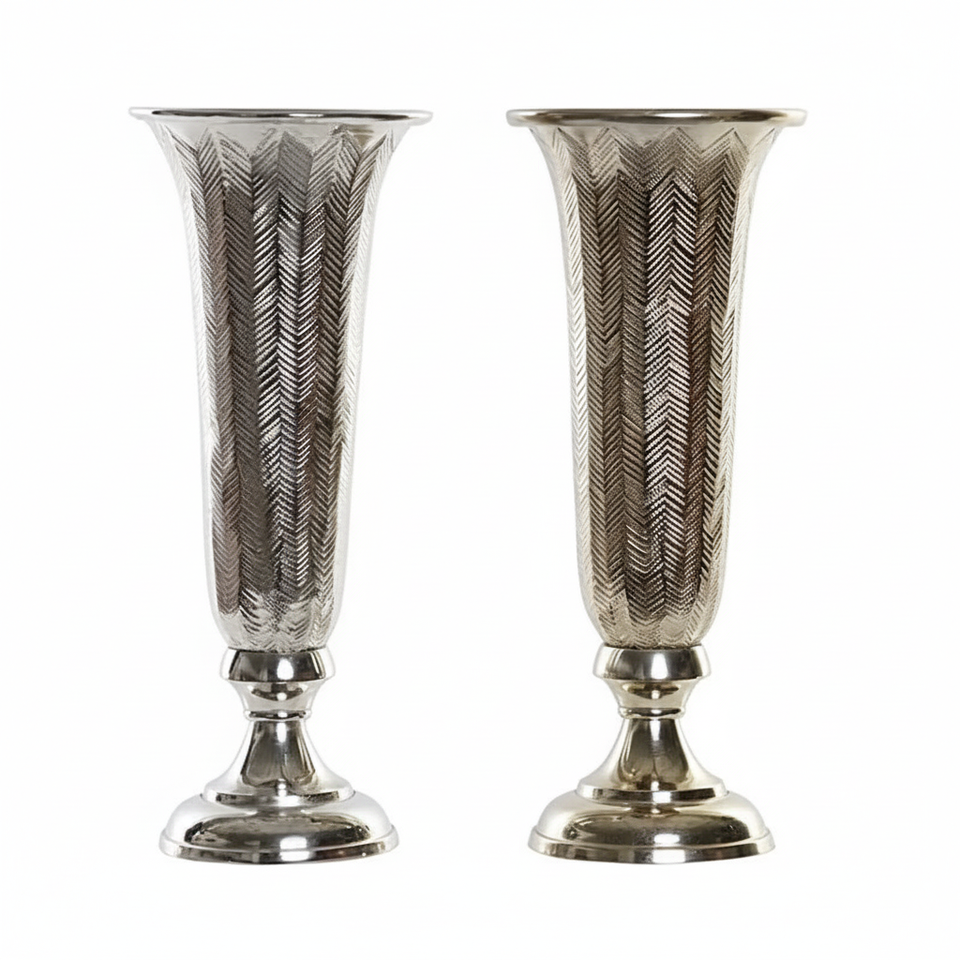 Vase à fleurs en aluminium dernier modèle avec lot de 2 décors pour la maison et le jardin Vase de table en argent pour la décoration de nouvelle génération