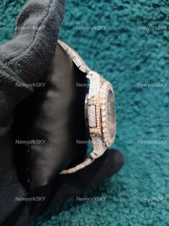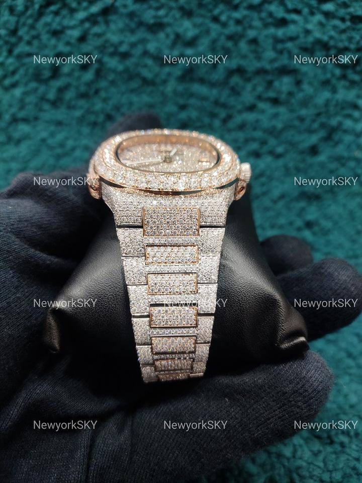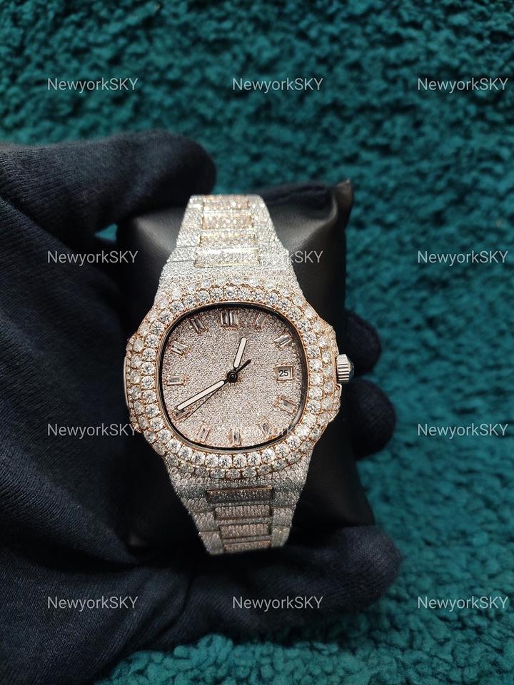 Dernier modèle de montre-bracelet de luxe mécanique en acier inoxydable clouté de diamants Moissanite VVS Clarity à mouvement automatique Lui Elle