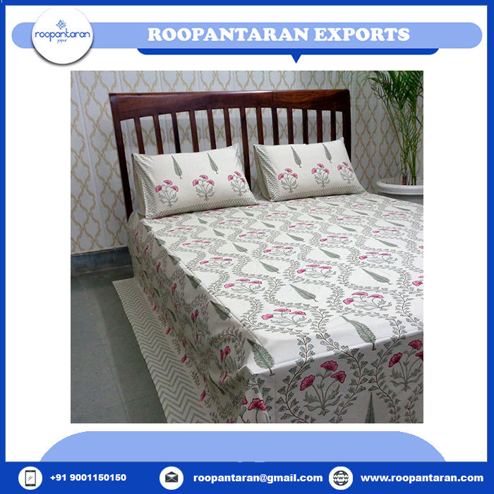 Ensemble de couvre-lit floral au design tendance, motifs exquis, imprimé à la main, en coton percale, taille Queen, pour usage domestique, prix de gros