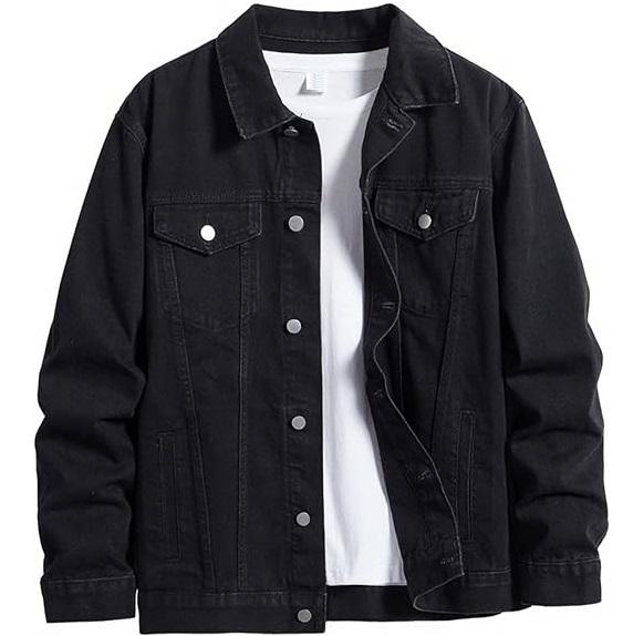 Veste en jean unie de dernière génération pour hommes, logo personnalisé OEM, mode, boutons d'hiver, fermeture à boutons, jean vintage noir délavé