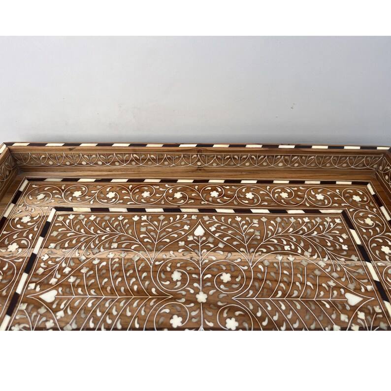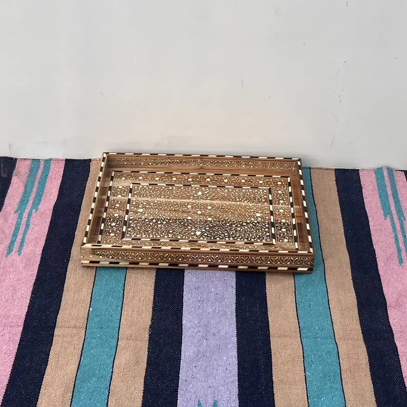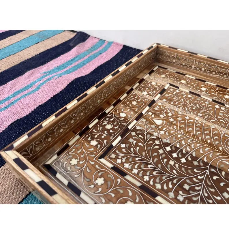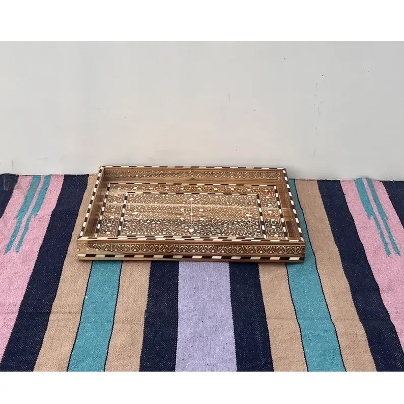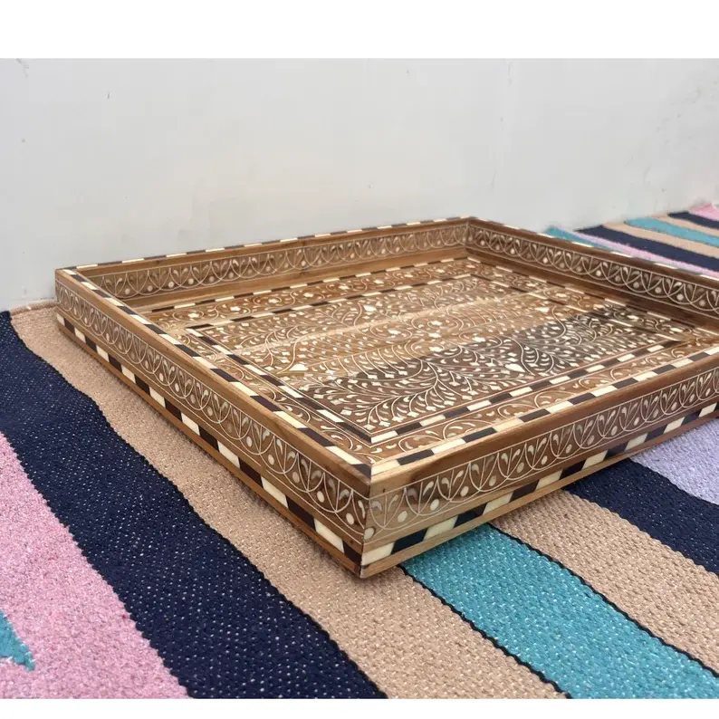 Plateau en os incrusté de pierres, dernier design, pour servir thé, café et en-cas dans la cuisine, disponible à prix abordable en provenance d'Inde.