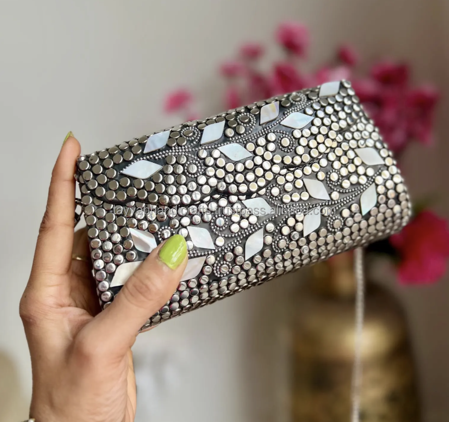 Dernier modèle de pochette en métal mosaïque en laiton pour les mariages et les fêtes, fabriqué par Tayyab Handicraft