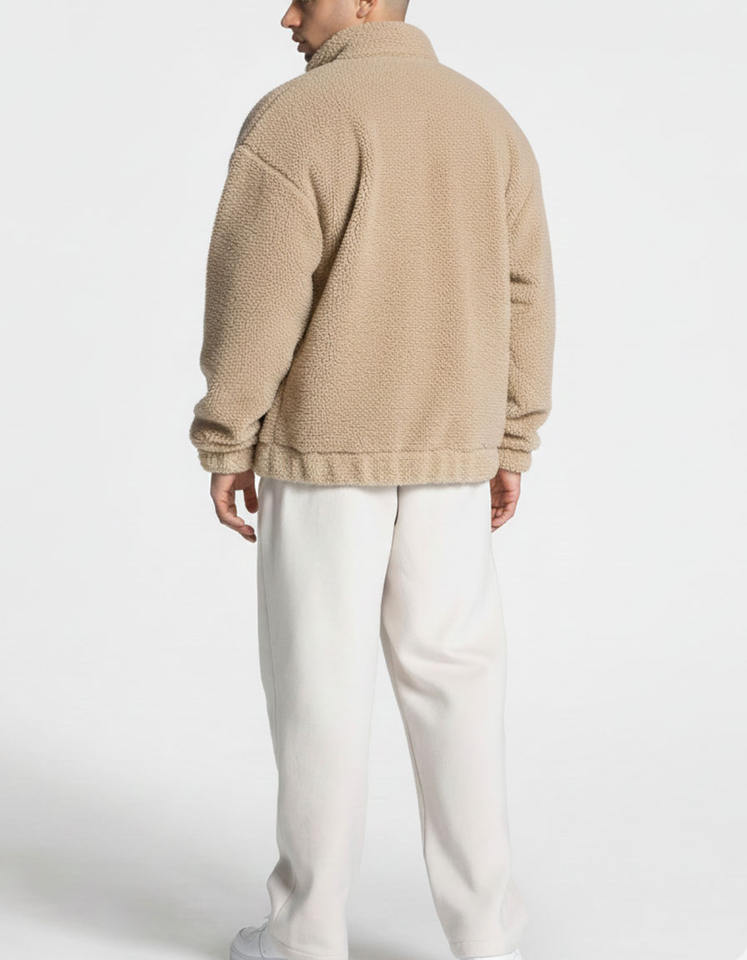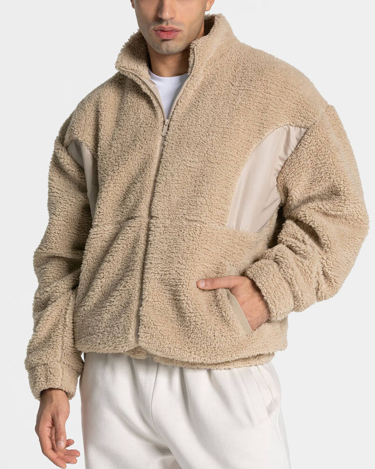 Dernier design, logo personnalisé, veste en polaire Teddy à col montant surdimensionnée, mélange de coton, vêtements de sport et de rue, sweat-shirt chaud pour hommes