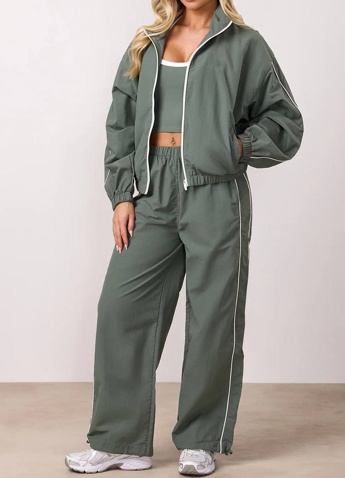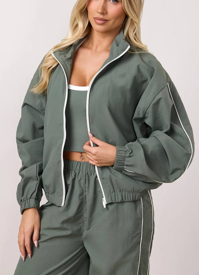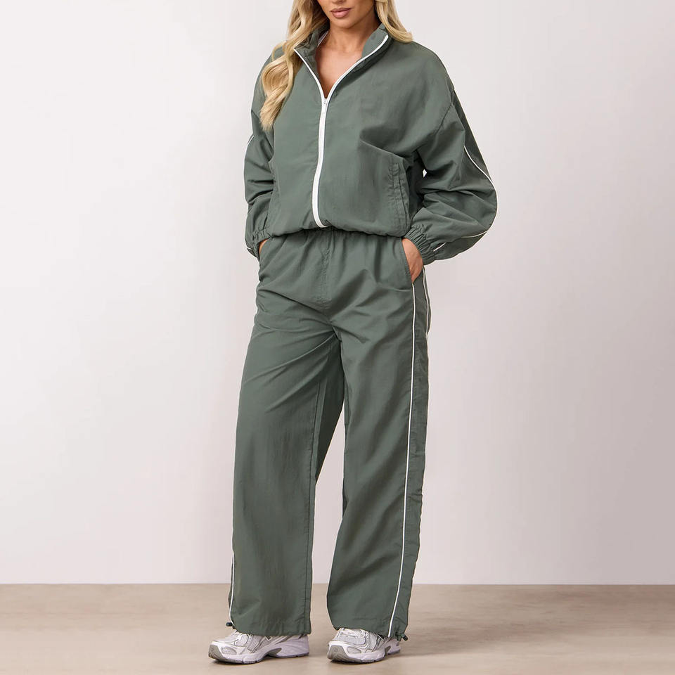 Nouvelle Collection : Ensemble de Survêtement Léger pour Femme avec Veste Zippée Intégrale et Joggers, Logo Personnalisé et Passepoil Contrastant