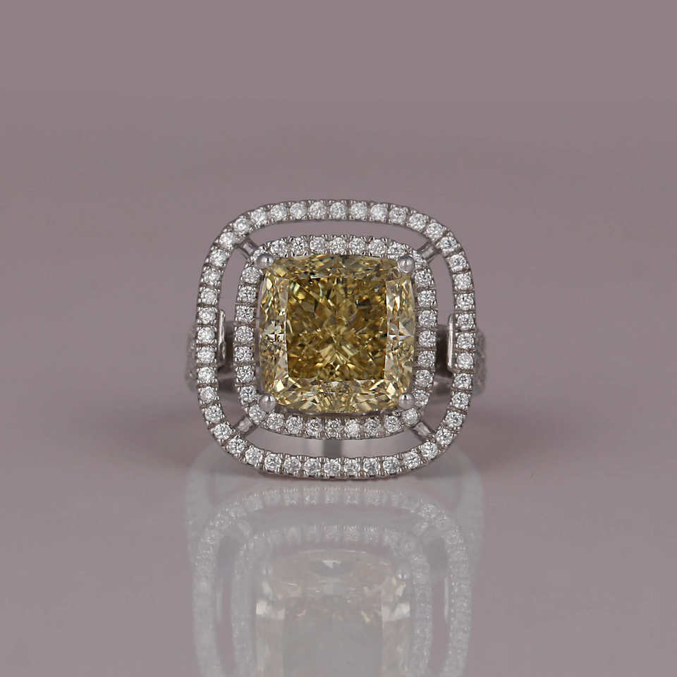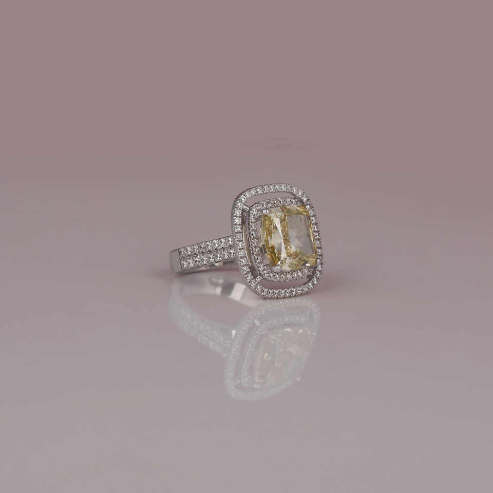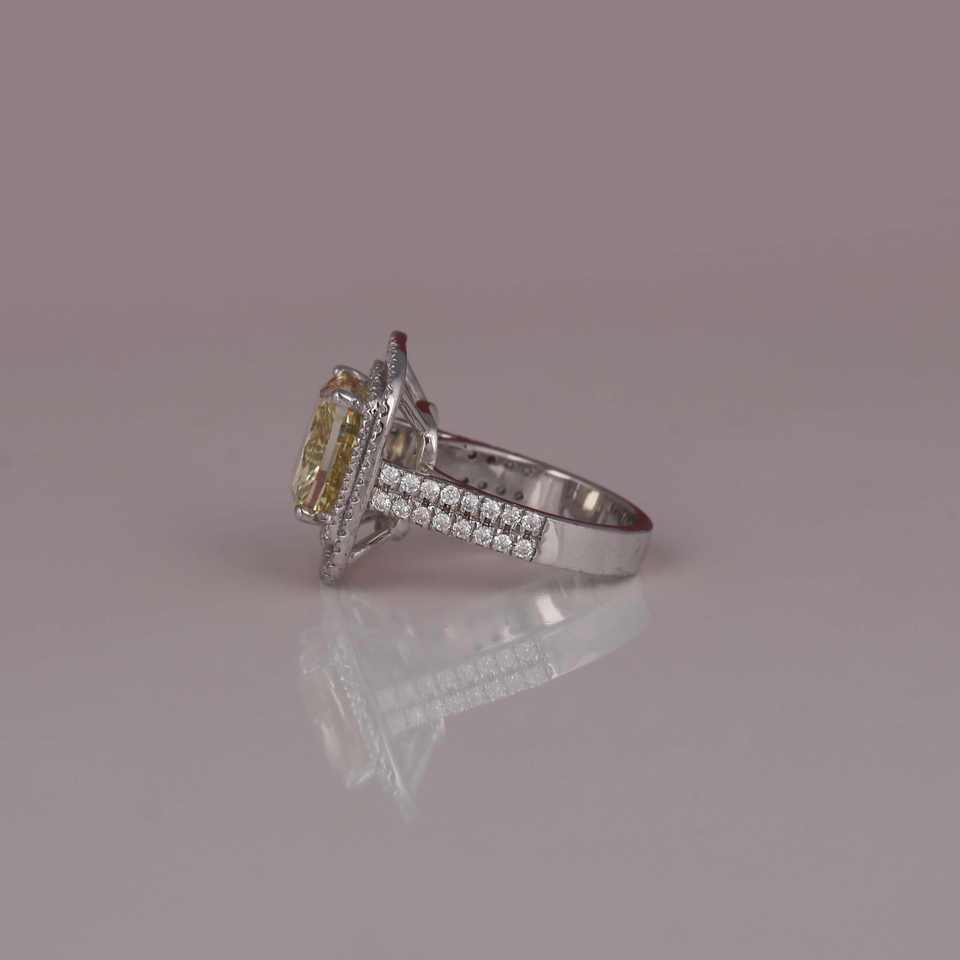 Dernière conception personnalisée jaune coussin coupe laboratoire diamant cultivé 18KT bijoux en or blanc massif IGI certifié Bling bague de fiançailles pour