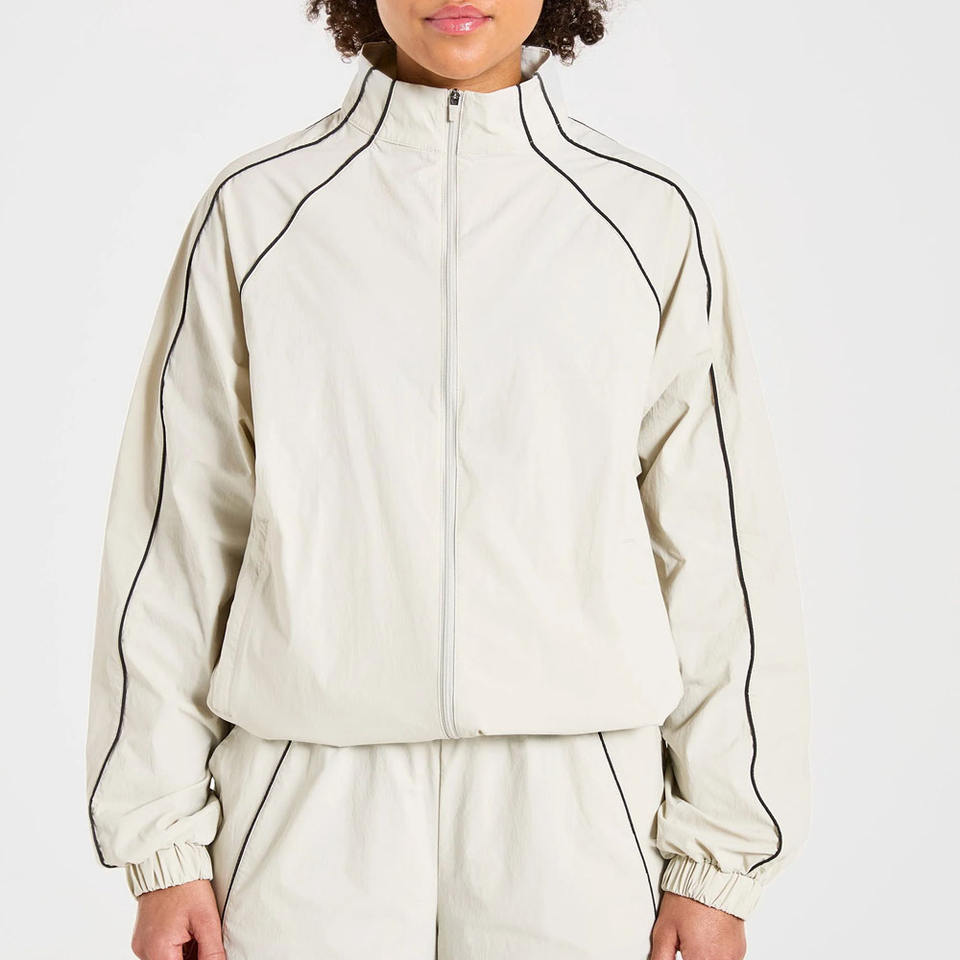 Nouvelle Collection : Survêtement et Jogger Personnalisés avec Fermeture Éclair, Piping Contrastant, en Nylon Léger – Tenue de Sport Femme (Hoodies & Sweatshirts)