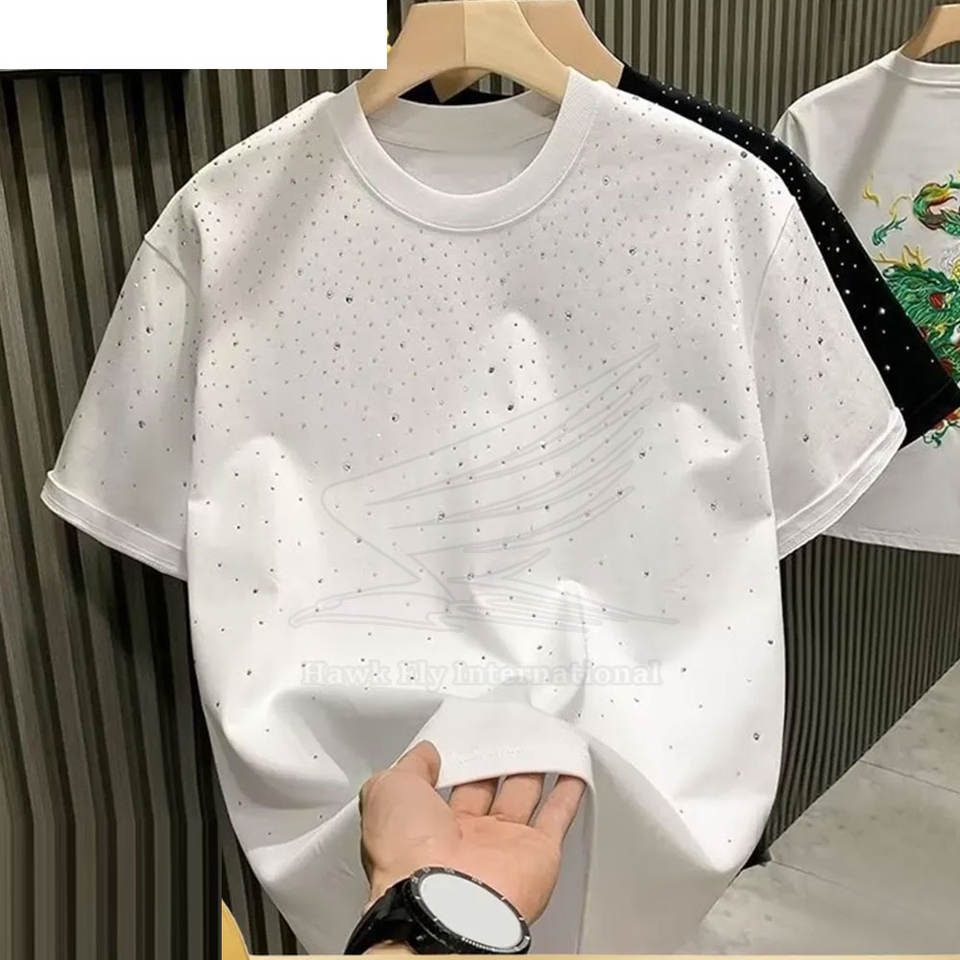T-shirt décontracté pour homme, dernière conception, couleur personnalisée, 100% coton, haute qualité, respirant, col rond, séchage rapide, tissu doux, strass