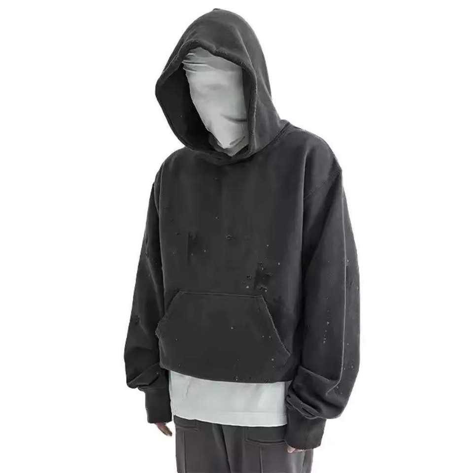 Nouveau design – Sweat à capuche surdimensionné délavé à l'acide, style ample vintage, épaules tombantes, coupe courte, personnalisé, pour homme