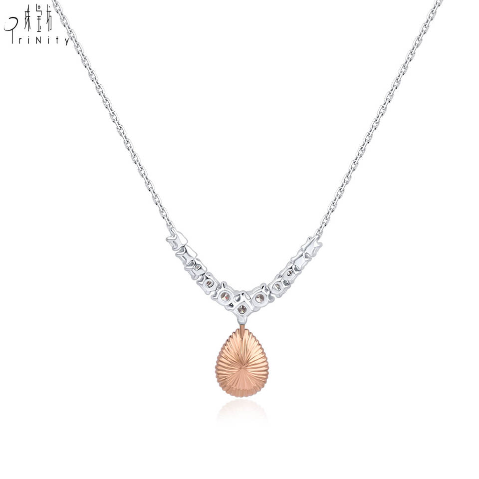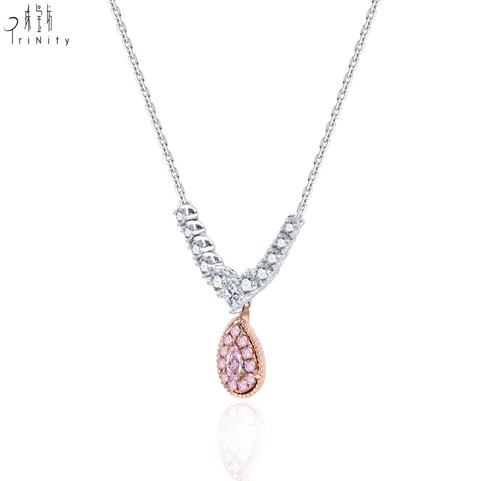 Dernier modèle de collier pendentif fantaisie en diamant rose taillé en poire or rose blanc 18 carats avec un véritable diamant naturel pour la vente en gros de cadeaux