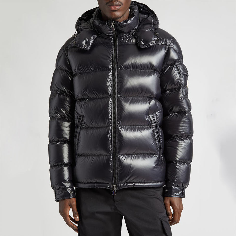 Dernière conception de veste matelassée pour homme en toile de polyester brillante avec logo personnalisé, garniture en fourrure, imperméable, design à bulles, hiver