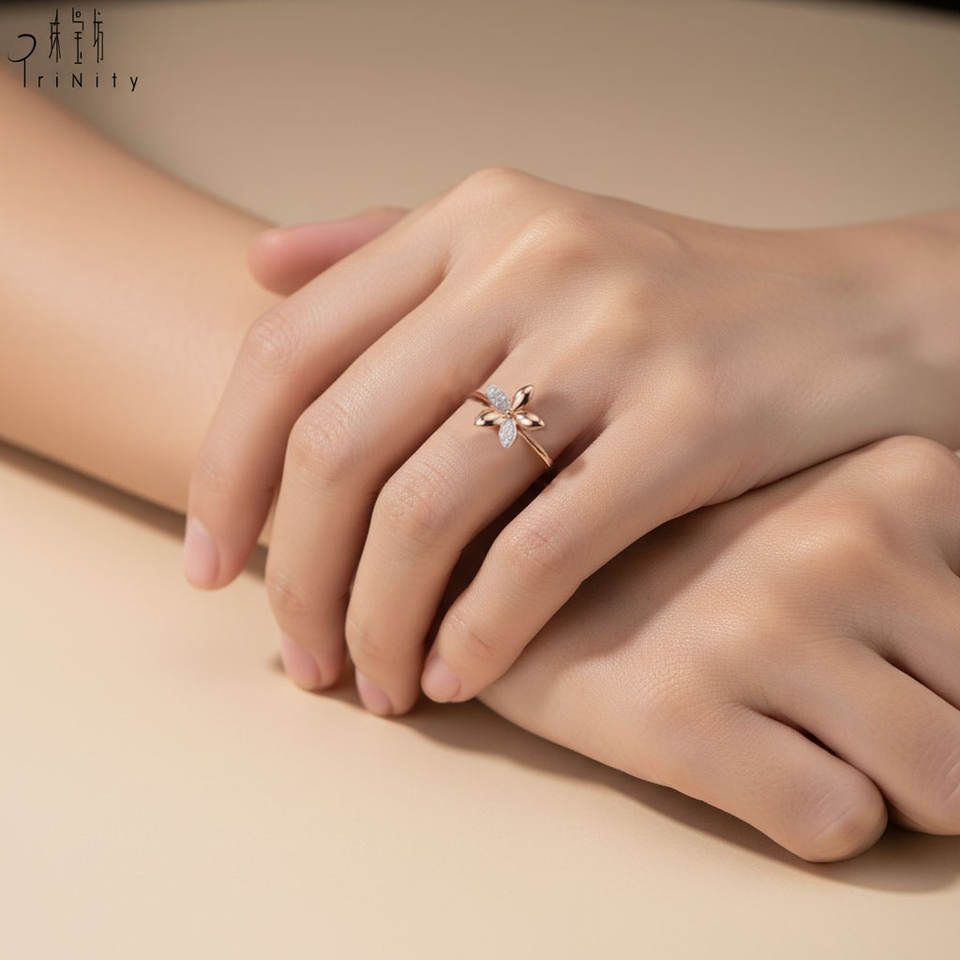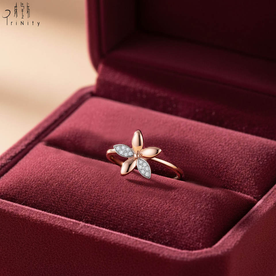 Dernière Collection : Parure de Bagues Tendance Faites à la Main, Style Floral, en Or Rose Massif 18K avec Diamants Naturels Véritables – Bagues de Mariage pour Femme