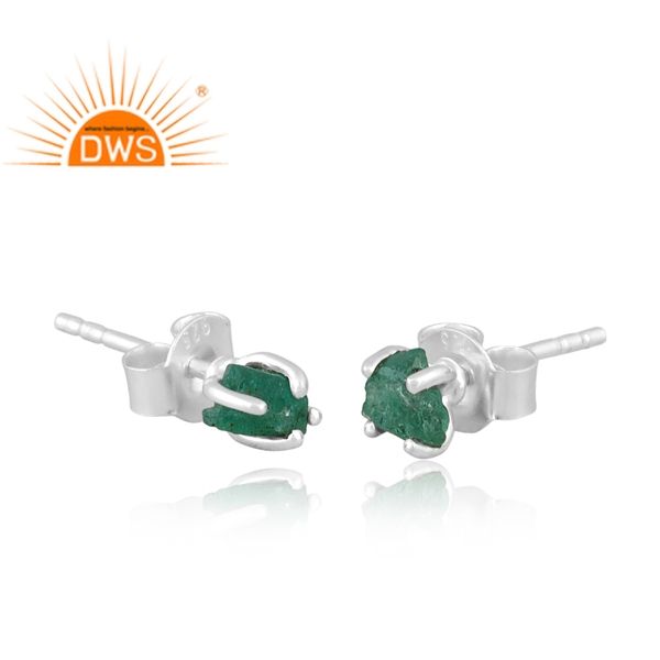 Dernière conception de boucle d'oreille en argent sterling fin émeraude brute naturelle bijoux personnalisés pour les femmes cadeau pour elle