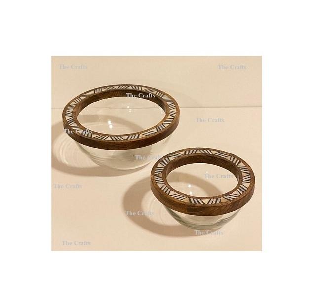 Bol à chocolat en verre au design classique avec travail en bois, bol à fruits de haute qualité pour la maison et l'hôtel