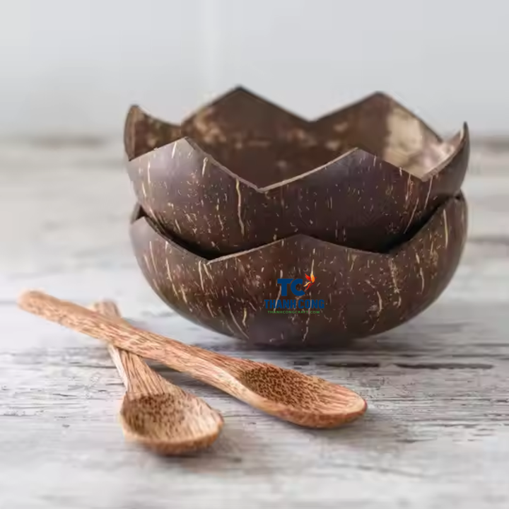 Dernier modèle de bol en coquille de noix de coco Lotus pour gâteau Smoothie aux fruits Bols ronds en noix de coco sculptés à la main Made In Vietnam