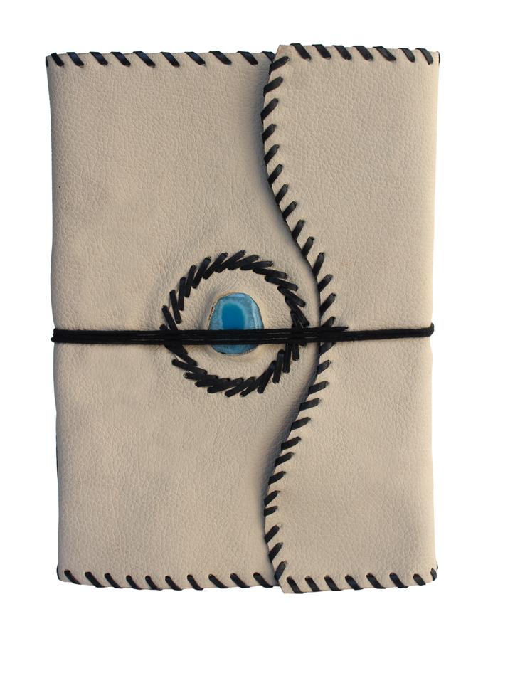 Journal intime en cuir véritable blanc dernier modèle, coutures latérales, bordure, design personnalisable, attrayant, montage en pierre, business