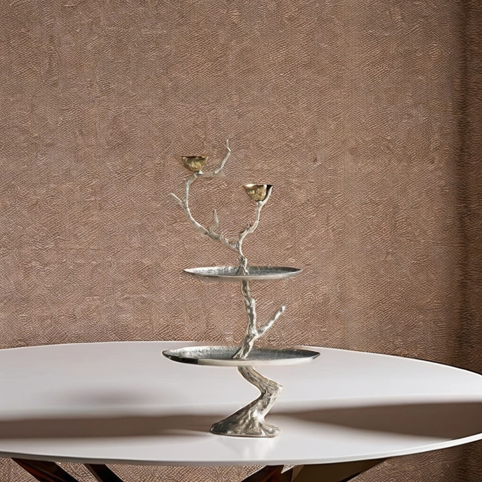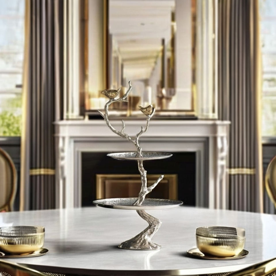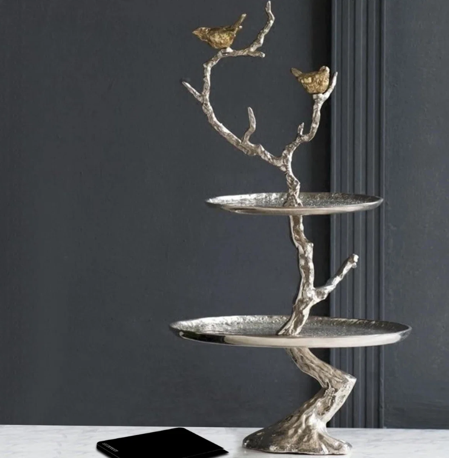 Support à gâteau de luxe à 2 niveaux en bois brun, fabriqué à la main, écologique, réutilisable, avec poignée, plateau de service décoratif pour cupcakes, dernier design