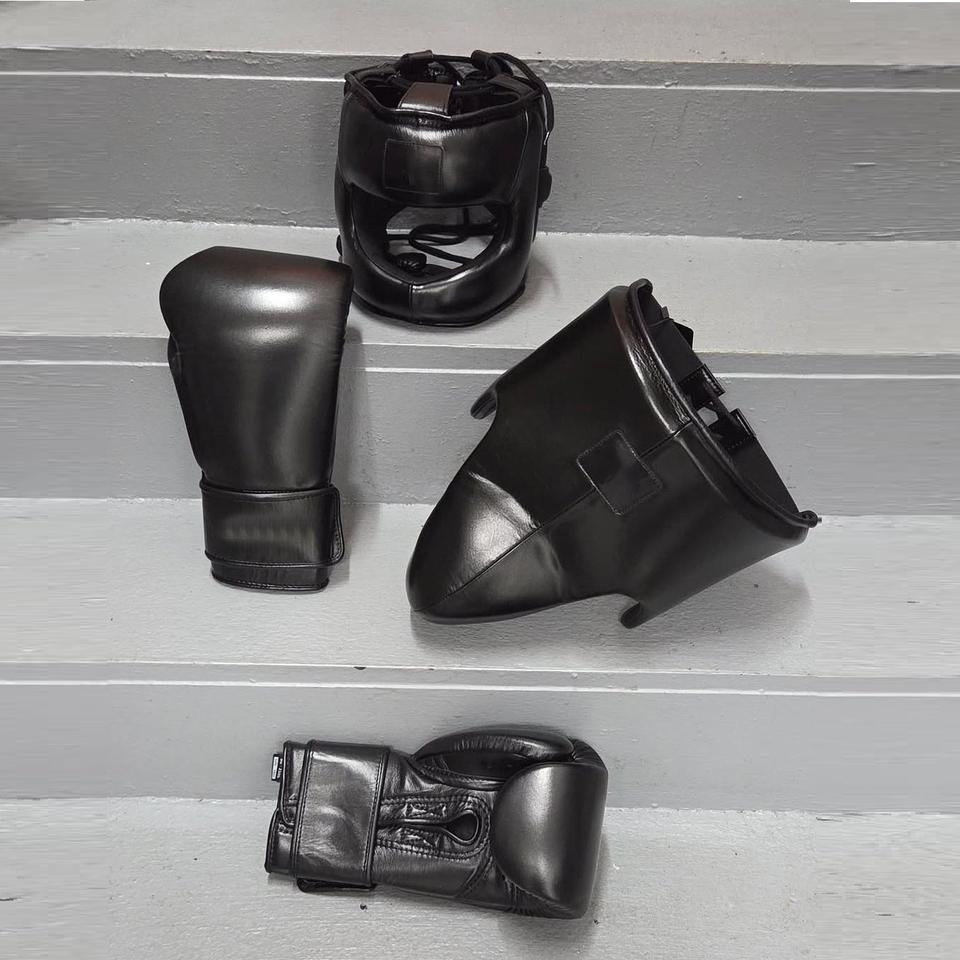 Ensemble de sparring de boxe au design moderne à vendre, logo personnalisé, équipement d'entraînement de kickboxing professionnel en cuir véritable, ensemble d'entraînement